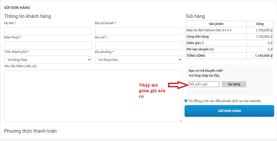 Bước 4: Điền đầy đủ thông tin khách hàng vào đơn hàng, sau đó bấm gửi hàng